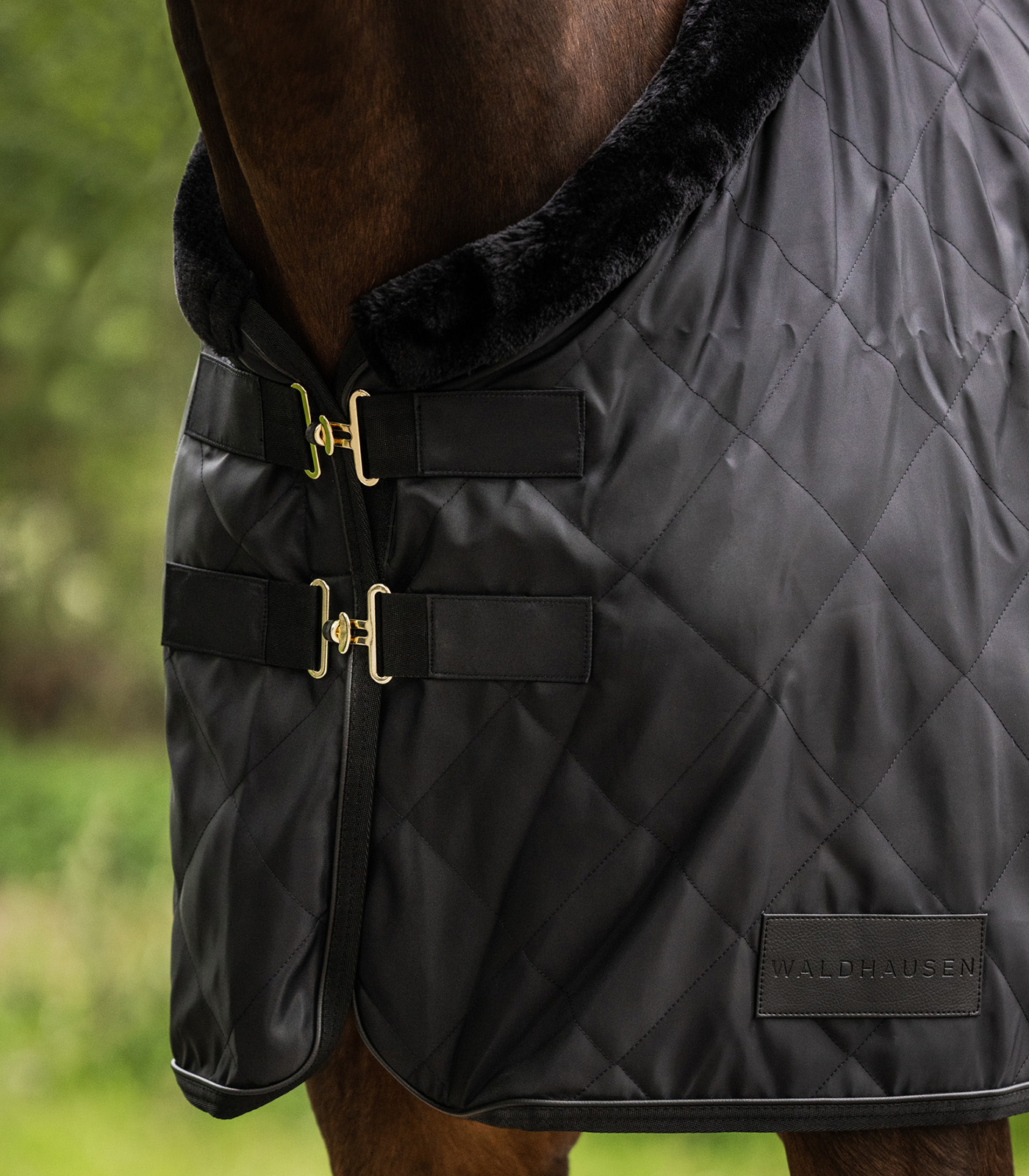 Couverture de transport de grande qualité, doublée d’une peau de lapin synthétique pour la saison froide. La peau de lapin particulièrement douce conserve parfaitement la chaleur du corps du cheval et évite les frottements. La couverture est parachevée par un col en fourrure synthétique. Elle est dotée de sangles croisées amovibles réglables en longueur, d’une double fermeture en T à l’avant et d’œillets métalliques pour la fixation d’une courroie de queue.